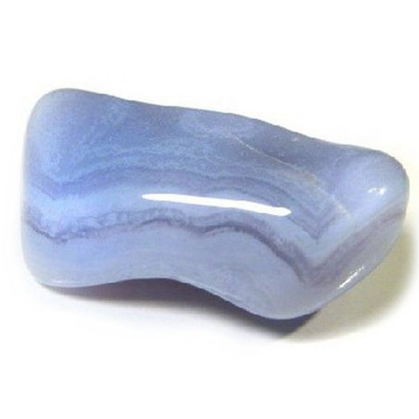 Blauwe Chalcedoon geeft zelfinzicht, zelfvertrouwen en bevordert hiermee het vermogen om weerstanden te doorbreken en veranderingen te accepteren. Het heeft een positieve werking op het geheugen en kalmeert op stressmomenten en is daarom een goede steen om te dragen tijdens examens. Het ondersteunt bij genezing van aandoeningen aan de luchtwegen.