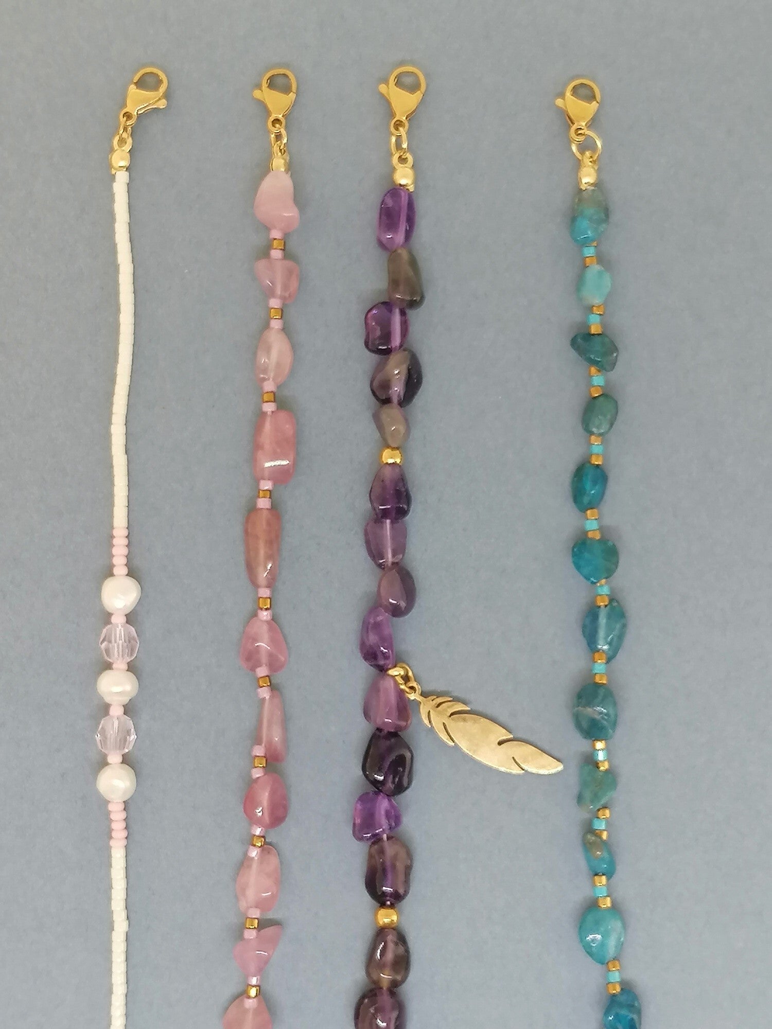 Foto 2: zoetwaterparels-Rozenquarz-Amethist-Apatiet