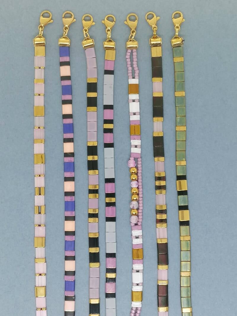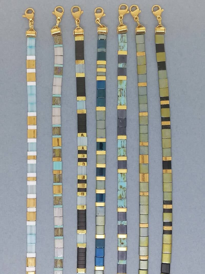 Tila beads zijn platte kralen met twee parallelle rijggaten. Doordat er verschillende maten zijn: heel-, half- en quarterTila's, heb ik trendy patronen gemaakt in de armbanden. Ontdek welke kleuren en leuke combinaties er zijn voor jouw Miyuki Tila armband.